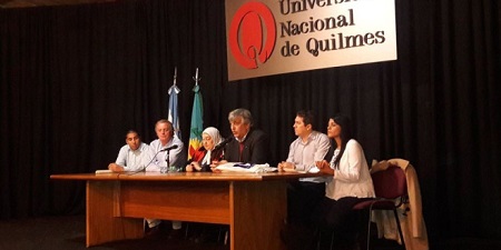 Además acompañaron el panel principal Mario Lozano (rector de la UNQ) junto a referentes de la agrupación La Nestor Kirchner como Alejandro Lopez (Nacional La Nestor Kirchner) y Alan Rivero (La Nestor Kirchner Quilmes), además de Gonzalo Seoane (jefe del equipo de prensa Madres de Plaza de Mayo).