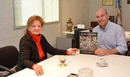 La viuda del internacionalmente reconocido artista plástico Aldo Severi, desaparecido en 2005, visitó esta mañana al intendente Martiniano Molina, en su despacho del Palacio Municipal de Alberdi 500. Giuliana Fiorini entregó al Jefe Comunal un libro en el que se recopilan las imágenes de la obra pictórica completa de Severi, y dialogó con Molina, quien se declaró “Un profundo admirador” del difunto artista, quilmeño por adopción.