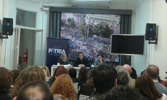 La apertura del encuentro plenario estuvo a cargo del cineasta, político y ex titular de RTA, Tristán Bauer, uno de los miembro del directorio del PATRIA; la ex directora de gestión educativa, Delia Méndez y el director general de Educación en Avellaneda y miembro de Educadores de ese distrito, Javier Gómez Perneta.