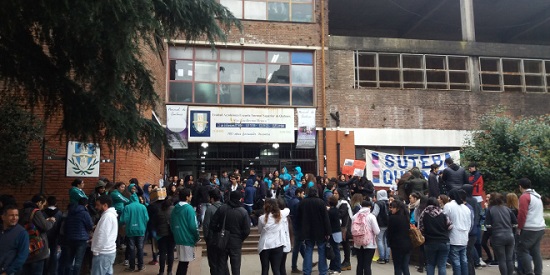 Docentes y alumnos de la Secundaria 20, el Ex Normal de Quilmes, realizaron una manifestación en la puerta del edificio ubicado en Mitre entre Colón y Conesa.
