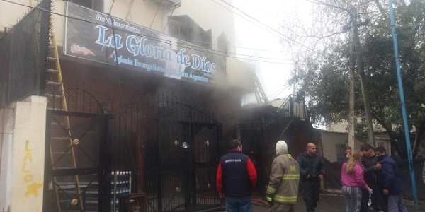 El siniestro se desató este mediodía en la iglesia «La gloria de Dios» ubicada en Ricardo Rojas entre Lamadrid y Jujuy.