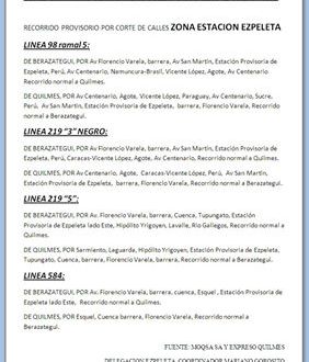 Por un corte de calles en la zona de la estación de Ezpeleta, la delegación municipal dio a conocer los nuevos recorridos provisorios de los colectivos:
