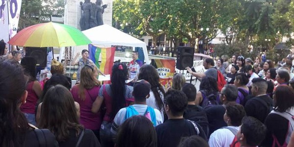 Bajo el lema «El sur diverso también existe» caminaron por la peatonal reclamaron por la ley antidiscriminatoria, por la reparación histórica a travestis y trans y por la reglamentación de la ley de cupo laboral travestis trans «Diana Sacayan».
