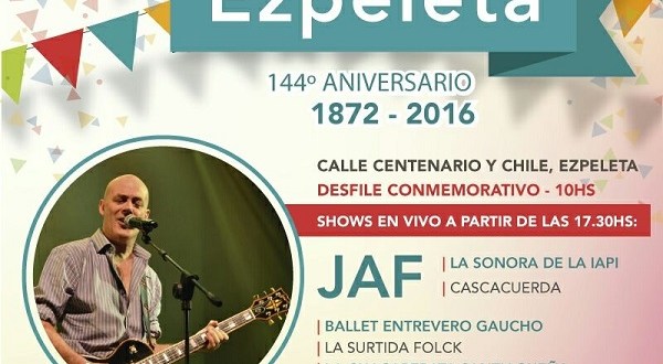 El gobierno de Martiniano Molina convoca a los vecinos a participar el domingo 27 de noviembre de los festejos por el 144º aniversario de Ezpeleta (1872-2016). La celebración comenzará a las 10, en calle Centenario y Chile, con un desfile conmemorativo.