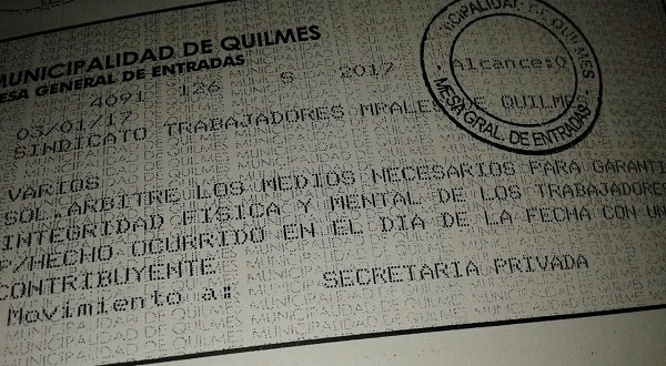 El Sindicato de Trabajadores Municipales de Quilmes pidió que el intendente garantice la integridad física de los empleados municipales.