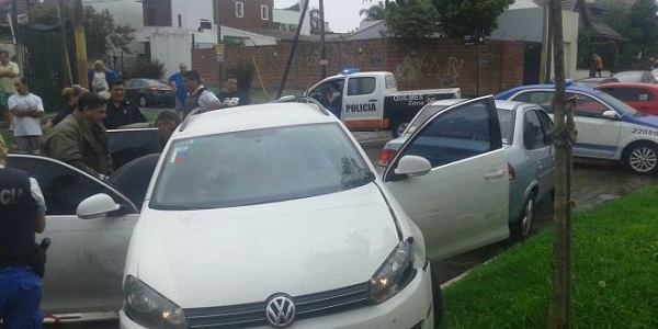 UnVW Vento que venía por Lavalle, impactó contra una Eco Sport y ambos, producto de la calzada resbaladiza por la lluvia, terminaron sobre la vereda.