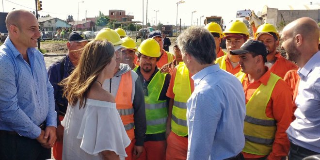 Allí se sacaron una foto con los operarios para luego desplazarse a pie unos 150 metros y supervisar las obras.