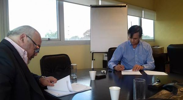El presidente de la Unión Industrial de Quilmes, Horacio Castagnini, firmó un convenio con la empresa francesa Colorín.