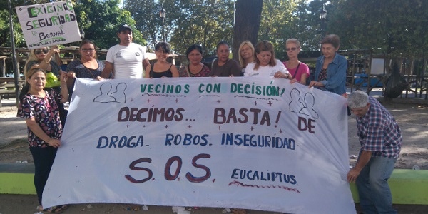 Vecinos del barrio Los Eucaliptus, de Quilmes Oeste, se trasladaron hasta el centro de la ciudad para denunciar el persistente accionar de bandas narcos en ese lugar.