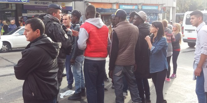 Policía, Gendarmería y Municipalidad, a través del área de fiscalización, intentaron desalojar violentamente a los ambulantes de origen senegales y nigeriano que estaban sobre Yrigoyen casi Rivadavia. Hubo forcejeos y golpes. Los vecinos y transeuntes criticaron el violento accionar policial
