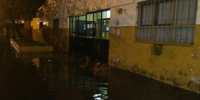 El acceso a la escuela 10, de Humberto Primo entre Mozart y Zola quedó totalmente anegado