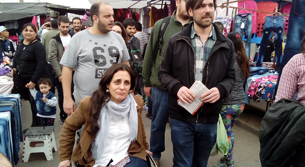 Nicolás del Caño, candidato a diputado nacional de la provincia por el Frente de Izquierda, y Carla Lacorte, primera en la nómina de concejales por Quilmes de esa fuerza, recorrieron la feria de San Francisco Solano para repartir sus propuestas de campaña. Los acompañó Hernán Izurieta, candidato a diputado e integrante de Poder Popular, y un importante grupo de militantes de las fuerzas que componen el FIT.