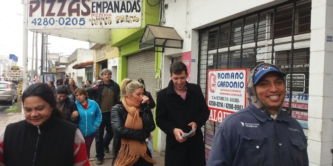 Los precandidatos a concejales, junto a un nutrido grupo de militantes paraban en los comercios para dialogar con sus propietarios e hicieron paradas en determinadas esquinas para dialogar con los vecinos.