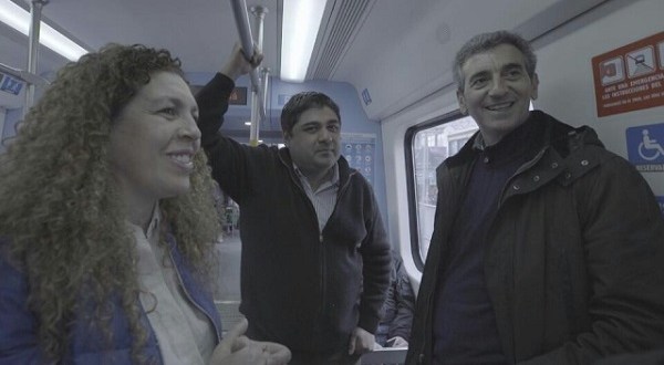 El candidato a senador por Cumplir hizo ayer un recorrido en tren desde Constitución hasta City Bell, bajando en tres estaciones de la Línea Roca.