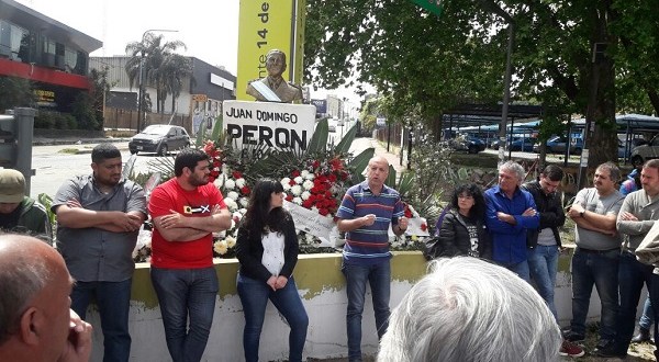 Diferentes agrupaciones políticas y sociales se reunieron para recordar al tres veces Presidente al cumplirse hoy el 122° Aniversario de su nacimiento frente al busto del General Juan Domingo Perón, ubicado al ingreso del puente 14 de Agosto, en Quilmes oeste,