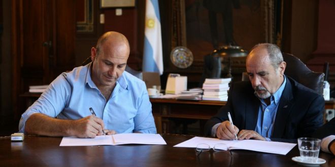 El intendente Martiniano Molina selló este lunes el convenio en la sede de la UNLP con su presidente, Raúl Aníbal Perdomo, y el decano de la Facultad de Ciencias Económicas, Martín Pérez Armengol. El Municipio también estuvo representado en el acto por la coordinadora general del Gabinete Social, Viviana Wilches.