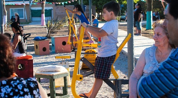Los vecinos participaron de la reinauguración de la plaza con exhibiciones de taekwondo, danzas árabes y acrobacia en tela, y con las presentaciones de la agrupación folclórica “Latiendo” y de la murga “Desacatados del Puente”. A esto se sumaron actividades municipales de recreación y maquillaje artístico, clases de iniciación al tenis y rugby, un sector de dibujos titulado “Decorá tu plaza” y una jornada de adopción de mascotas a cargo de la Clínica Veterinaria Municipal.