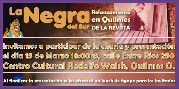 Mañana a las 18 se llevará a cabo la presentación en Quilmes de la revista de interés general y actualidad “La Negra del Sur” .