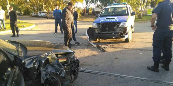 Por causas que se intentan establecer, un movil policial y un Volkswagen chocaron en la mencionada intersección.