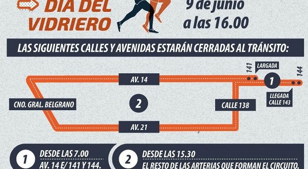 En este sentido, la Subsecretaría de Tránsito -dependiente de la Secretaría de Seguridad-, comunica que a partir de las 7.00 se cerrará la Av. 14 e/ 141 y 144; mientras que desde las 15.30 también se cortarán el resto de las calles y avenidas que comprenden el circuito de la competición, hasta aproximadamente las 18.30. Se estima que a las 19.00 la totalidad de las arterias quedarán abiertas al tránsito.