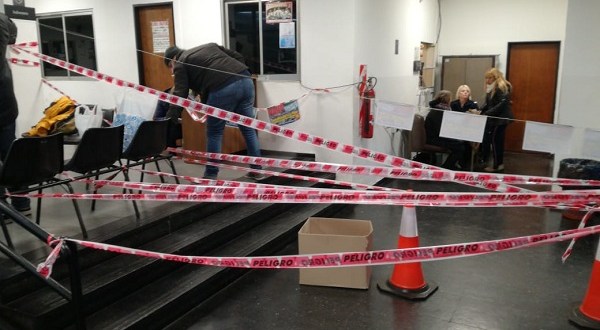 Colocaron cintas de seguridad y conos para visibilizar el conflicto y anunciar que mañana realizarán un paro de actividades para exigir la continuidad de la negociación paritaria.