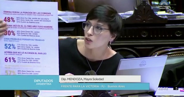 Finalmente señaló que “si bien dudamos de la voluntad del Gobierno con este proyecto, entendemos que es un tema importante para la gente, por eso es que vamos a acompañar.” Y antes de finalizar expresó: “Dudamos de un Gobierno que desde que comenzó gobierna para los ricos y nunca a favor de quienes más necesitan, todo lo contrario, están ahogando al pueblo. Dudamos pero queremos que SI hagan algo, una a favor de la gente. No está mal confiar, lo que está mal es mentir. No jueguen con la esperanza de la gente.”