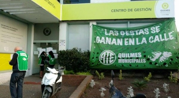 Los trabajadores municipales afiliados a ATE Quilmes realizaron un asamblea y paro en el Centro de Gestión de Quilmes Oeste, 12 de Octubre y Velez Sarfield, porque no tienen luz, gas ni agua.