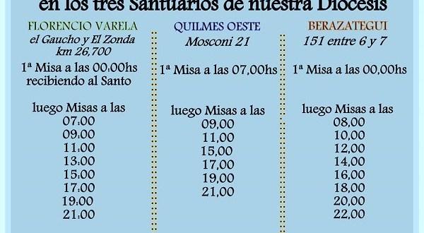 La diócesis de Quilmes dio a conocer el cronograma de en los tres santuarios dedicados al santo patrono del Pan y del Trabajo.