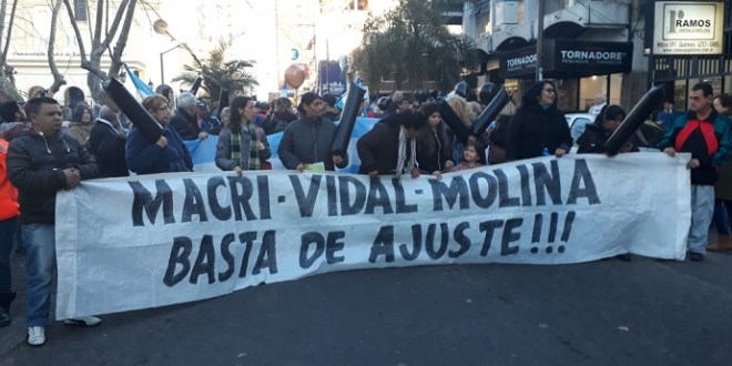 Bajo el lema «Poco para celebrar» organizaciones sociales, políticas, culturales y gremiales se convocaron en la plaza San Martín para marchar desde allí hacia Rivadavia e Yrigoyen donde expresaron su descontento con las políticas sociales y económicas de los gobiernos nacional, provincial y municipal.