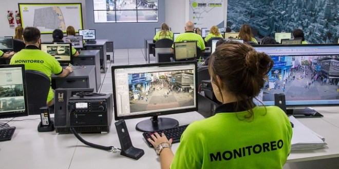 Las cámaras de seguridad del distrito, ubicadas en plazas, escuelas, zonas comerciales y bancarias, paradas de micros y principales ingresos, son controladas las 24 horas los 365 días del año.