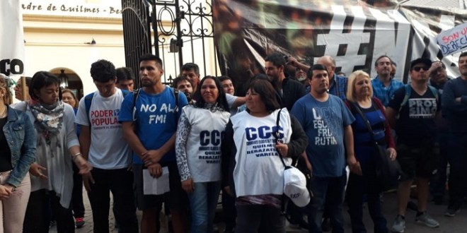 «Quilmes en Asamblea» nuclealmiento que reúne a referentes políticos, sociales y gremiales, realizó una manifestación frente a la Catedral de Quilmes y se movilizó por el centro de la ciudad para expresar su rechazo a las políticas de ajuste del FMI.