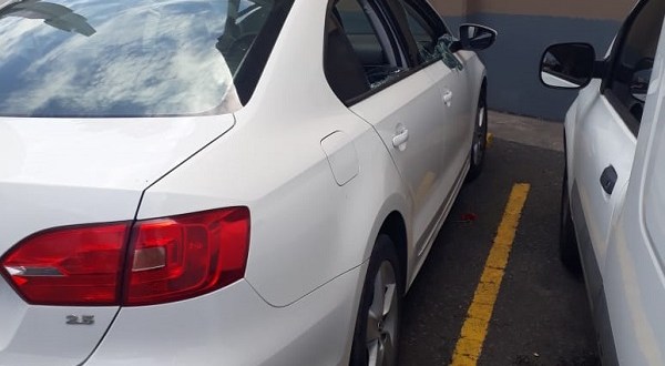 Los sujetos le rompieron casi todos los vidrios del auto y le robaron su computadora personal y su celular.
