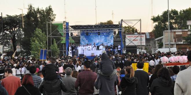 A pesar de las amenazas de lluvia, a las 19 se realizó la Misa en el lugar previsto, donde horas antes se habían llevado a cabo la olla popular con los movimientos sociales, el festival de música y la radio abierta. El lema que animó la jornada fue “Escucha Señor el clamor de los pobres”.
