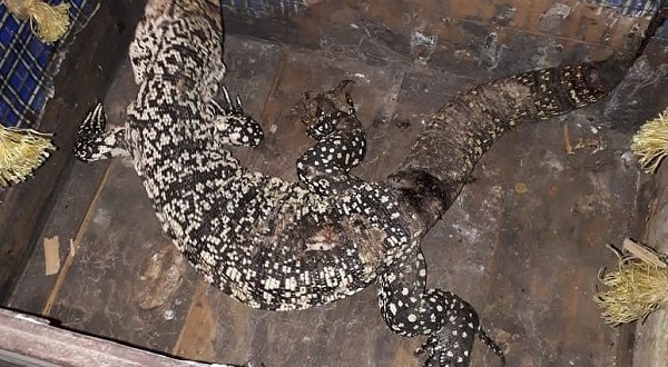 Dos agentes policiales encontraron anoche en Mitre y Hernández una iguana de casi un metro de longitud.