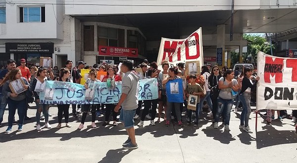 Familiares y allegados de una joven asesinada en el Parque Pereyra se concentraron frente a los tribunales de Quilmes.