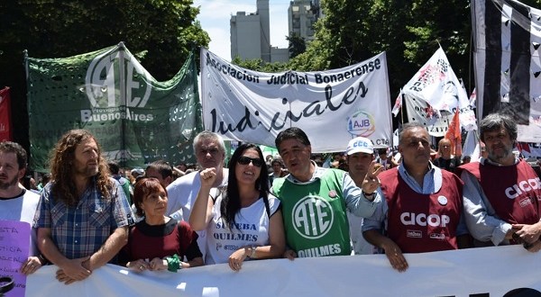 El Secretario General de ATE y de la CTAA (Central de Trabajadores Argentinos Autónoma) de Quilmes Claudio Arévalo, participa de la movilización a la Legislatura Provincial donde se trata el Presupuesto: » vamos a plantear a los legisladores a que No aprueben ese presupuesto que traen recorte en el área de salud, educación y políticas sociales de niñez».
