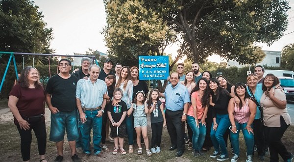 El nombre del Paseo de la plaza reconoce a Remigio Pilat, vecino oriundo de Italia, impulsor de la Sociedad de Fomento Almirante Brown y que siempre trabajó en busca del bienestar del barrio. Una de sus hijas, Claudia, expresó: “Mi papá estaba muy comprometido y este es un reconocimiento a su trayectoria y a su bondad. Para mi familia es un orgullo”.
