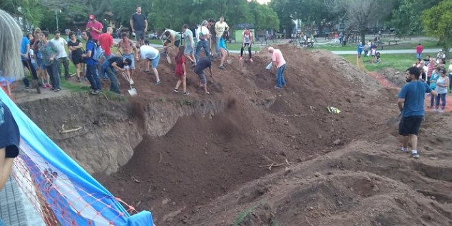 Vecinos con palas taparon el pozo que se hizo para el fallido Punto Verde en la Plaza del Maestro