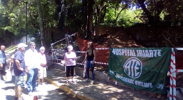 Trabajadores y delegados de ATE en el Hospital de Quilmes junto a un grupo de vecinos, lograron frenar la obra para instalar una antena de telefonía celular en el predio del Isidoro Iriarte.