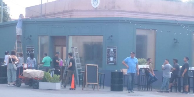 La esquina de Gran Canaria y 12 de Octubre donde funciona la seccional Tercera de la Policía fue «tapada» por una escenografía que simula un bar.