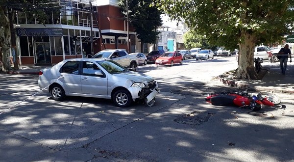 Un motociclista fue embestido por un auto en la esquina de Alvear y Brandsen.