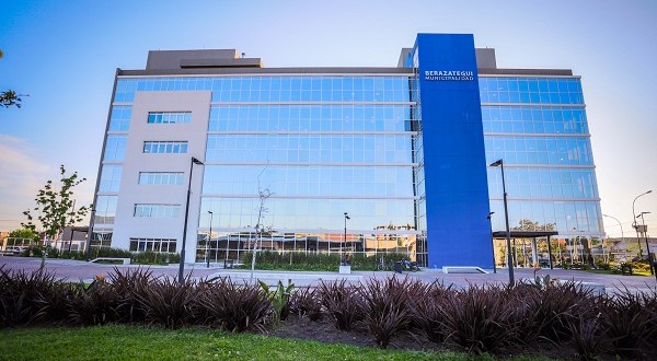 El flamante edificio de la Municipalidad de Berazategui, inaugurado en 2015, sumará a su frente una original estructura en la cual ya está trabajando personal municipal. Tendrá unas dimensiones de 25,9 x 6,76 m. y estará conformado por 437500 venecitas.