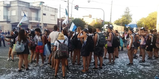 Para eso, previamente organizan pintarse las remeras de los uniformes o guardapolvos y así vestidos salen a la calle con bombos, espuma y bengalas.