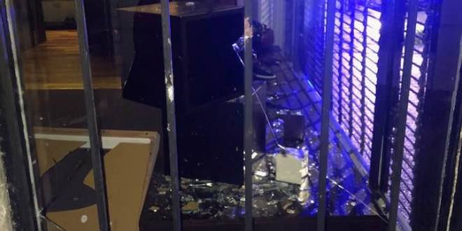 El 29 de enero pasado también rompieron una de las vidrieras de Elaskar y robaron, casi un mes después, el 25 de febrero, pintaron el frente de varios locales de la cuadra y esta madrugada, volvieron a robar.