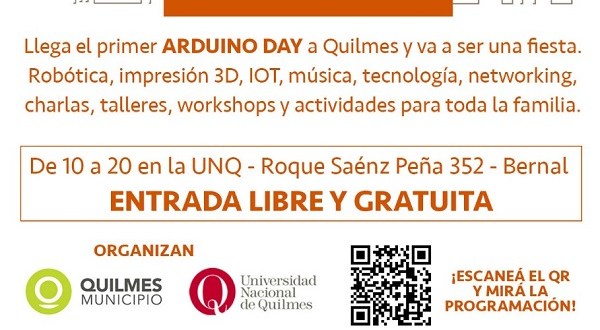 Organizado por el Municipio y la Universidad Nacional de Quilmes, el 16 de marzo, de 10 a 20, se realizará el primer Arduino Day de la zona sur, en la sede de la UNQ (Roque Sáenz Peña 352, Bernal).