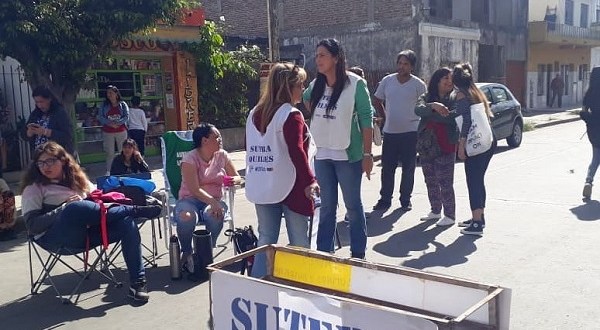 La comunidad educativa de la escuela primara 11 de Solano realizó una movilización en la puerta del establecimiento ubicado en 835 y 895 para denunciar que por problemas con el suministro de agua, los alumnos van a clases de manera alternada.