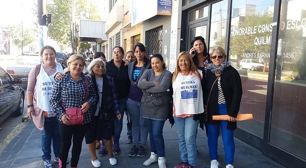 Esta mañana, junto a la secretaria general del SUTEBA Quilmes, Debora Procacchini, volvieron a manifestarse frente a las puertas del Consejo Escolar.