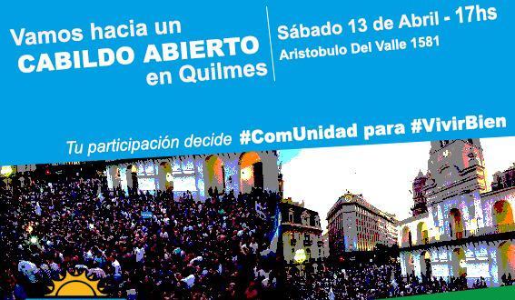 El sábado 13 a partir de las 17 se realizará un encuentro vecinal hacia un «Cabildo Abierto» organizado por la agrupación «De Frente por Quilmes» que conduce Gabriel Berrozzpe.