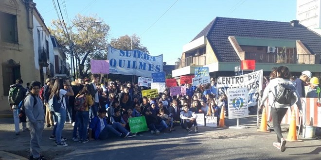 Estudiantes de la escuela Media 3, de Corrientes y Manuel Quintana, realizaron una sentada frente al Museo Roverano, de Rivadavia y Pringles donde se encuentra la oficina de la Dirección de Infraestructura Escolar para reclamar la entrega de mobiliario.