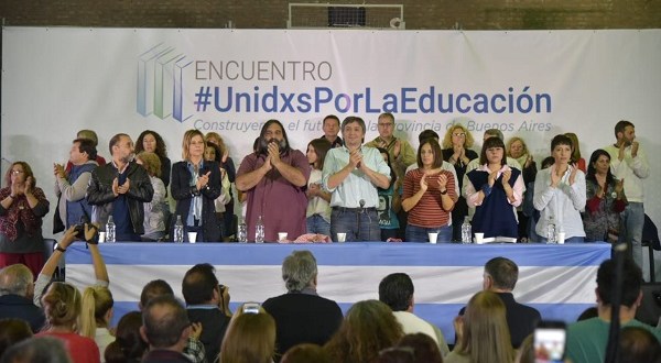 Por su parte, el Secretario General de SUTEBA, Roberto Baradel, quien destacó las políticas educativas de los gobiernos de Néstor Kirchner y Cristina Fernández, expresó: “No vamos a enseñar nunca que ‘pobres hubo siempre’, vamos a enseñar que si en la Argentina se producen alimentos para 400 millones de personas pero hay más del 52% de los pibes por debajo de la línea de pobreza, es porque hay algunos que se quedan con la riqueza de la mayoría de los argentinos”, y agregó: “Donde está la escuela está la Patria. Vamos a volver a construir un gobierno nacional y popular”.